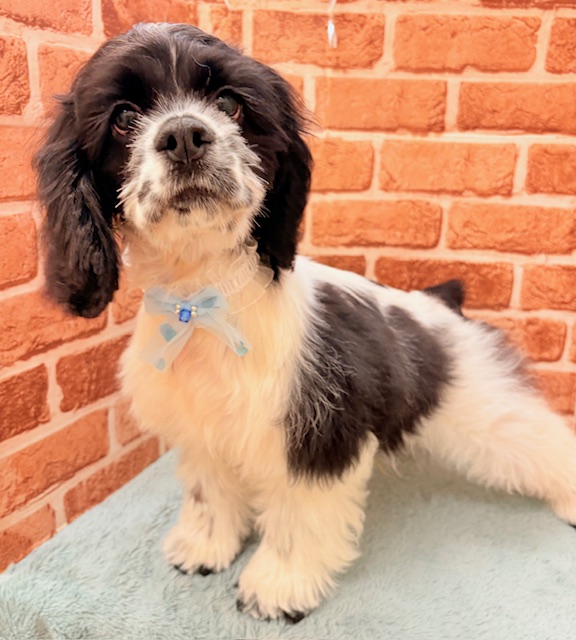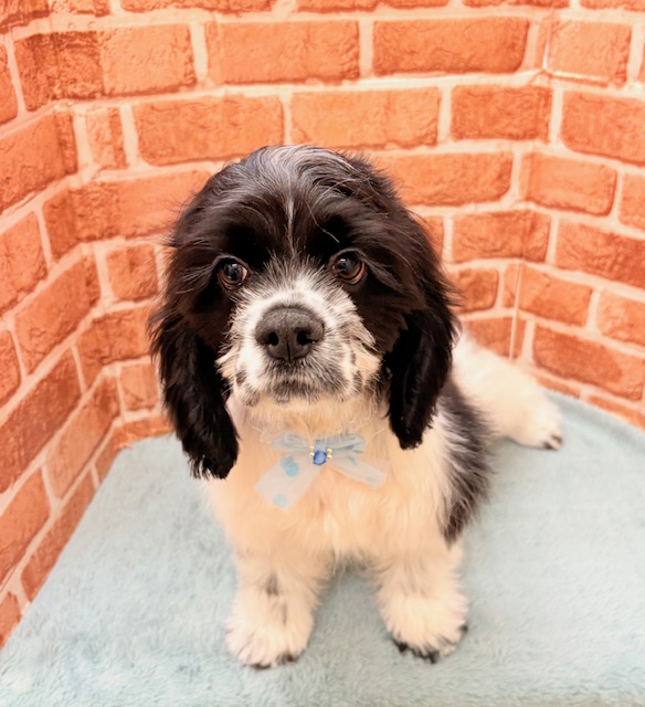 とっても珍しいホワイト&ブラックのアメリカンコッカースパニエルの男の子が新しく仲間入りしました♪とっても元気でやんちゃボーズ、人懐っこくて遊び好き♡♡ディズニーの『わんわん物語』の主人公として有名なアメリカンコッカースパニエルの男の子に是非会いに来てくださいね♪