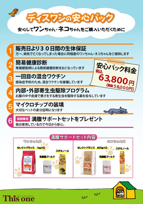 生体をご購入頂く場合は、生体価格と別途安心パック代、ワクチン代を頂いております。