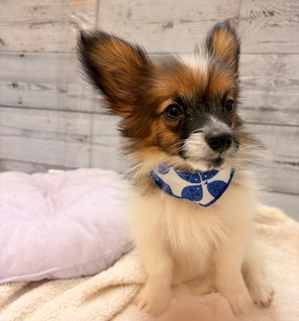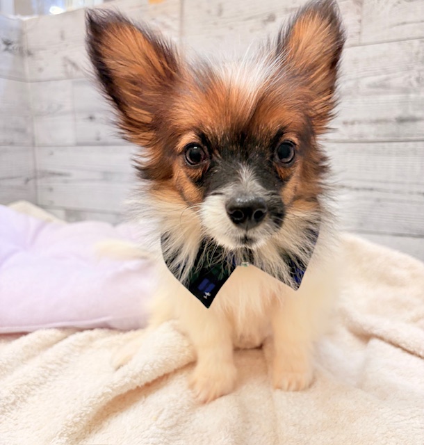 パピヨンちゃんの男の子が新しく仲間入りしました♪とっても人懐っこくて、愛嬌たっぷりのお顔が可愛いパピちゃんです♡とっても元気でオモチャで遊ぶのが大好き♡良くおもちゃをブンブン振り回しています(笑)