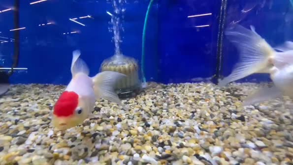 真っ白な身体に頭頂部が赤い綺麗な金魚です!