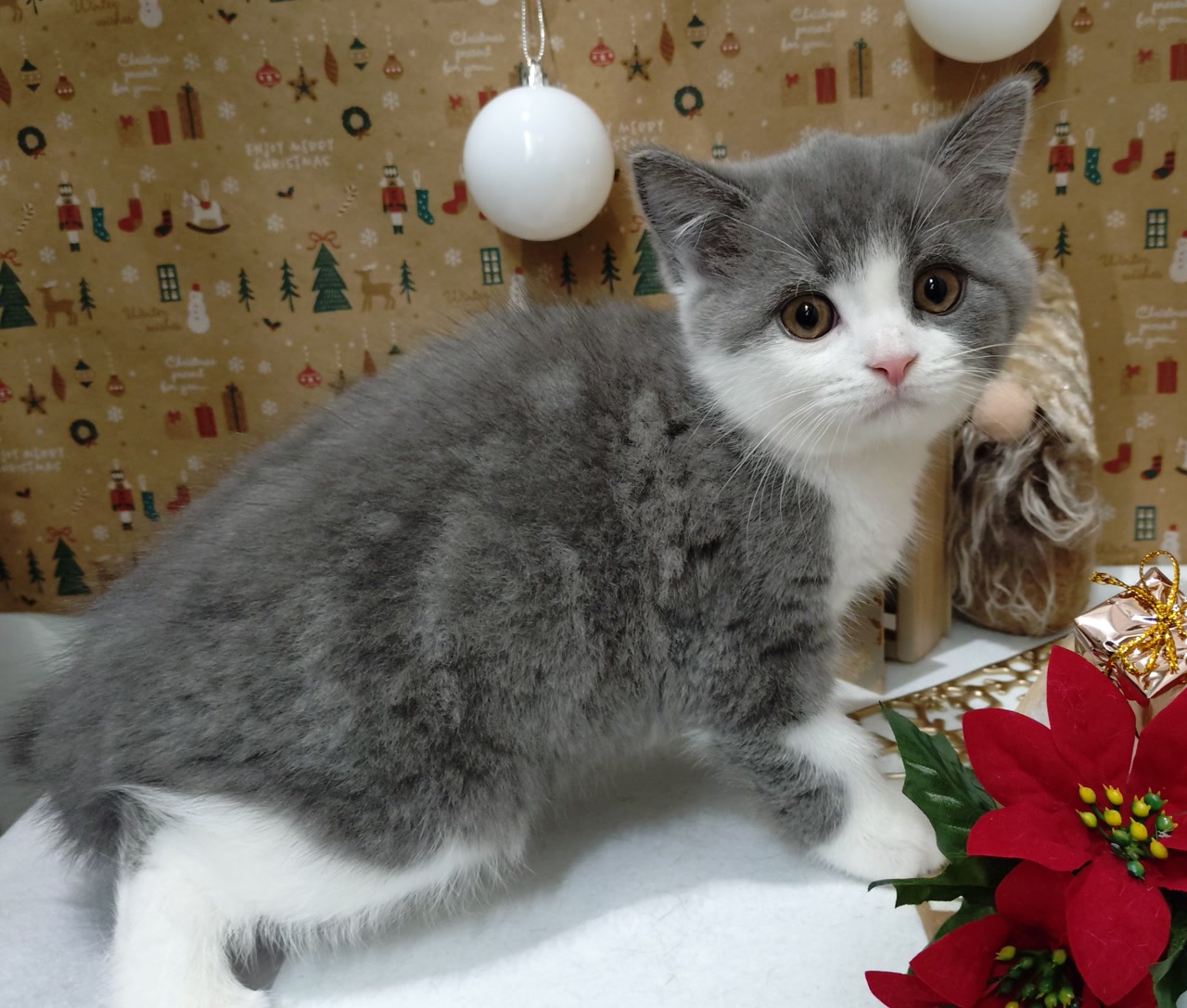 ブルーホワイトのカラーリングが特徴的なブリティッシュショートヘアーの男の子がデビューしました!!!お母さん似の毛色になります。性格は活発で人懐っこいです。