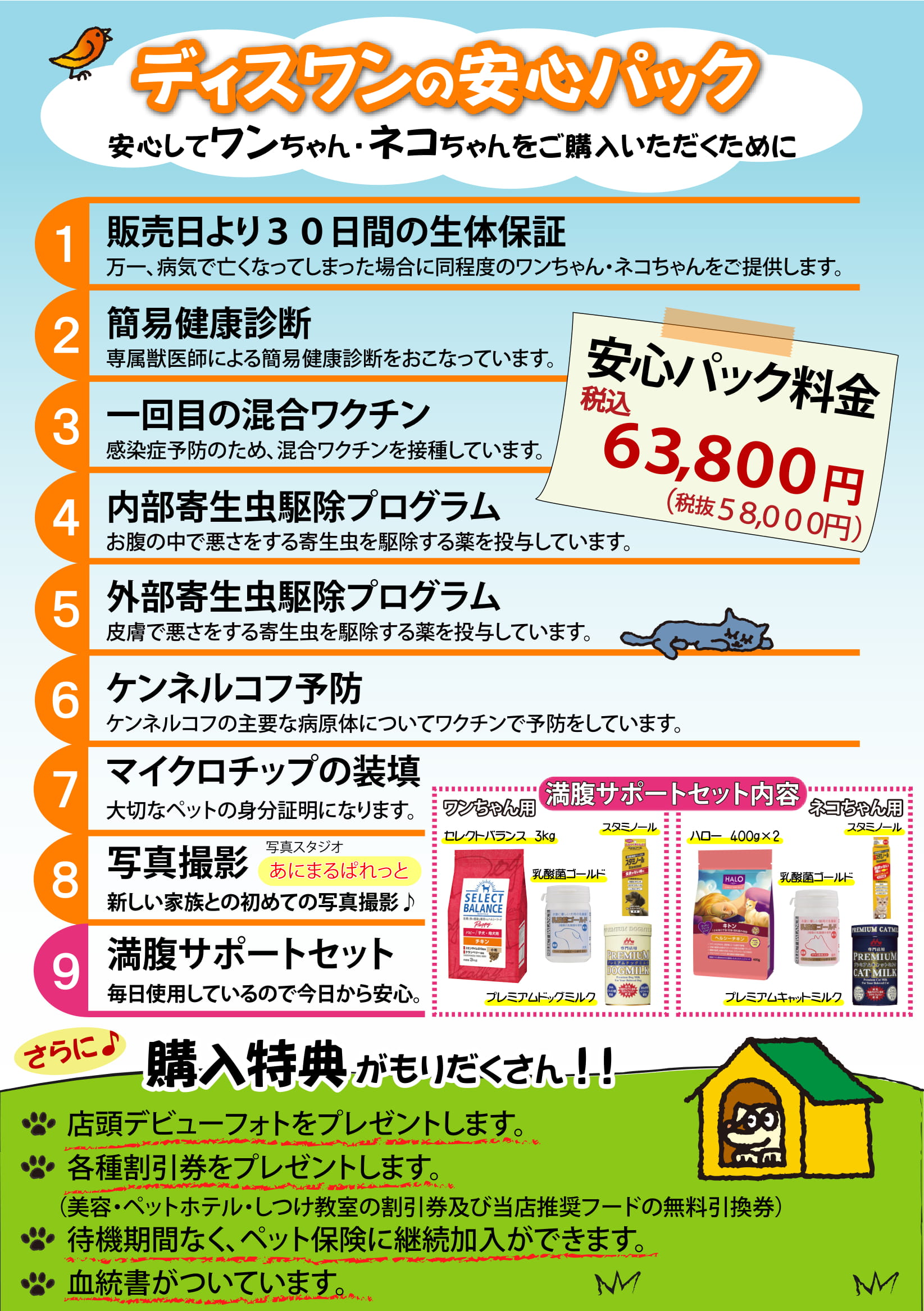 生体をご購入頂く場合は、生体価格と別途安心パック代、ワクチン代を頂いております。